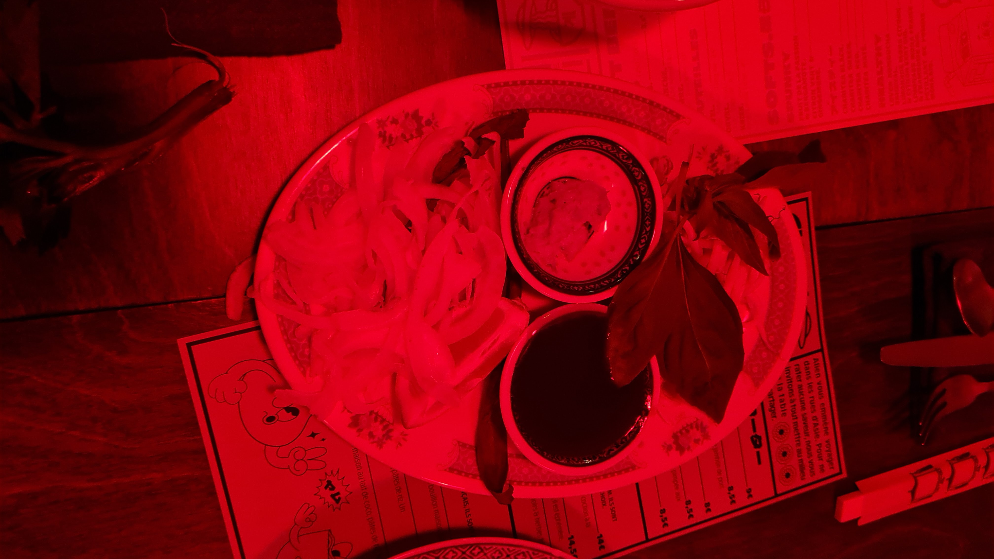 Posté le 09/11/2023 à 12:56"Je n'ai pas compris... Endroit plébiscité sur les réseaux, communication +++ et malheureusement je me suis fais avoir. Endroit très grand mais désespérément vide un vendredi soir. Un restaurant apparemment asiatique. Alors oui quand on voit la déco ok, mais après être installé a une table en dessous d'une enceinte qui diffusait du rap/RnB, étrange... La cuisine : quelques plats asiatiques a la carte mais rien a voir avec les nombreux restaurants de Lille avec une carte bien plus fournie. Quant à la nourriture, des nems loin d'être les meilleurs, un ramen bien trop épicé, tellement que j'en ai mangé 3 cuillères... Un geste commercial ? Oui un des deux pauvres desserts qui se battent en duel... Merci mais non merci. Bref passez votre chemin, ou venez pour une photo à mettre sur les réseaux."