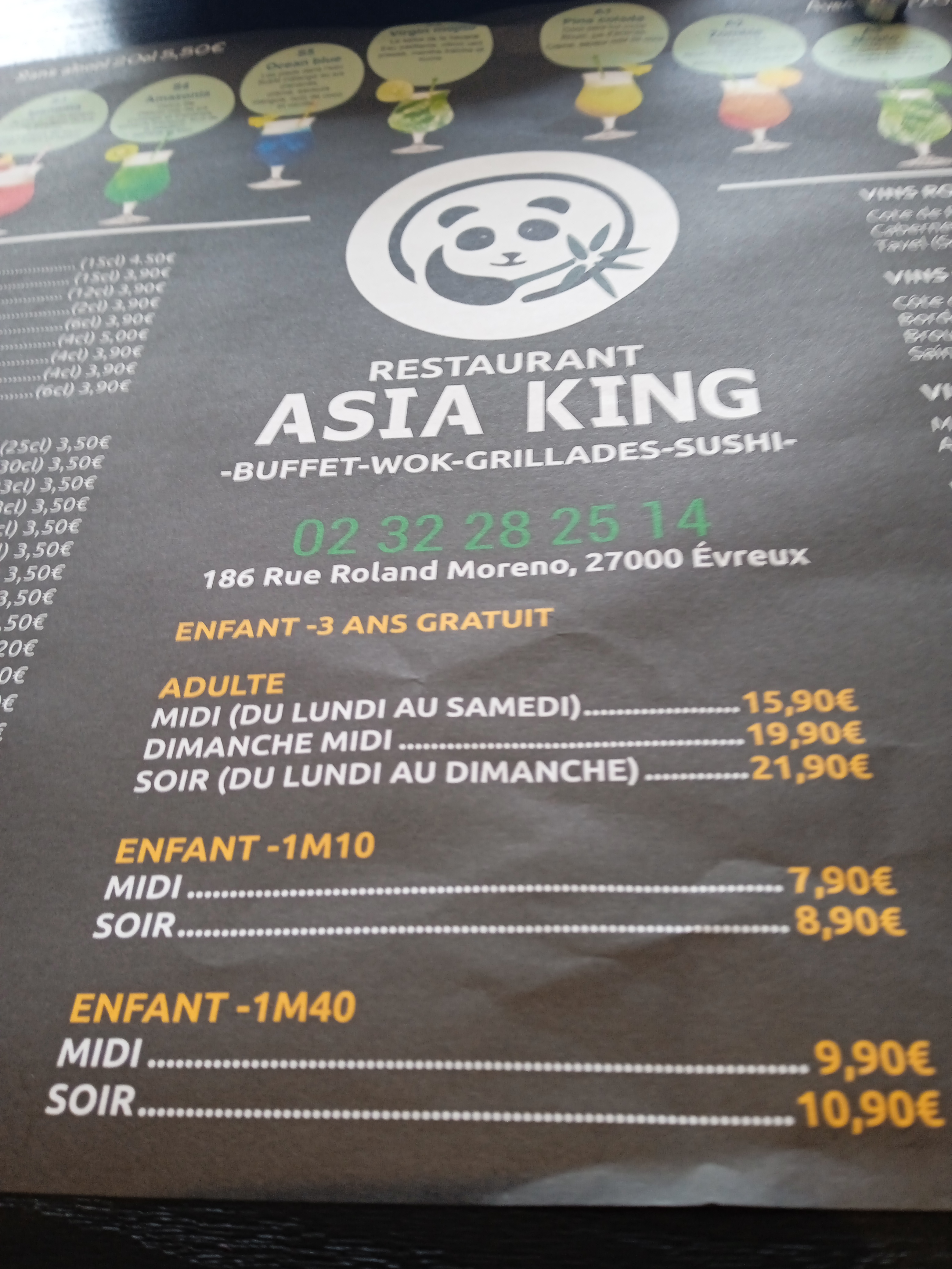 Découvrez toutes les informations concernant Restaurant asiatique Asia King qui se situe au Boulevard du 14 juillet, Centre commercial Carrefour, 27000 Évreux (27). Cette fiche inclut les photos, les horaires d'ouverture, l'adresse, le numéro de téléphone et les avis des clients.