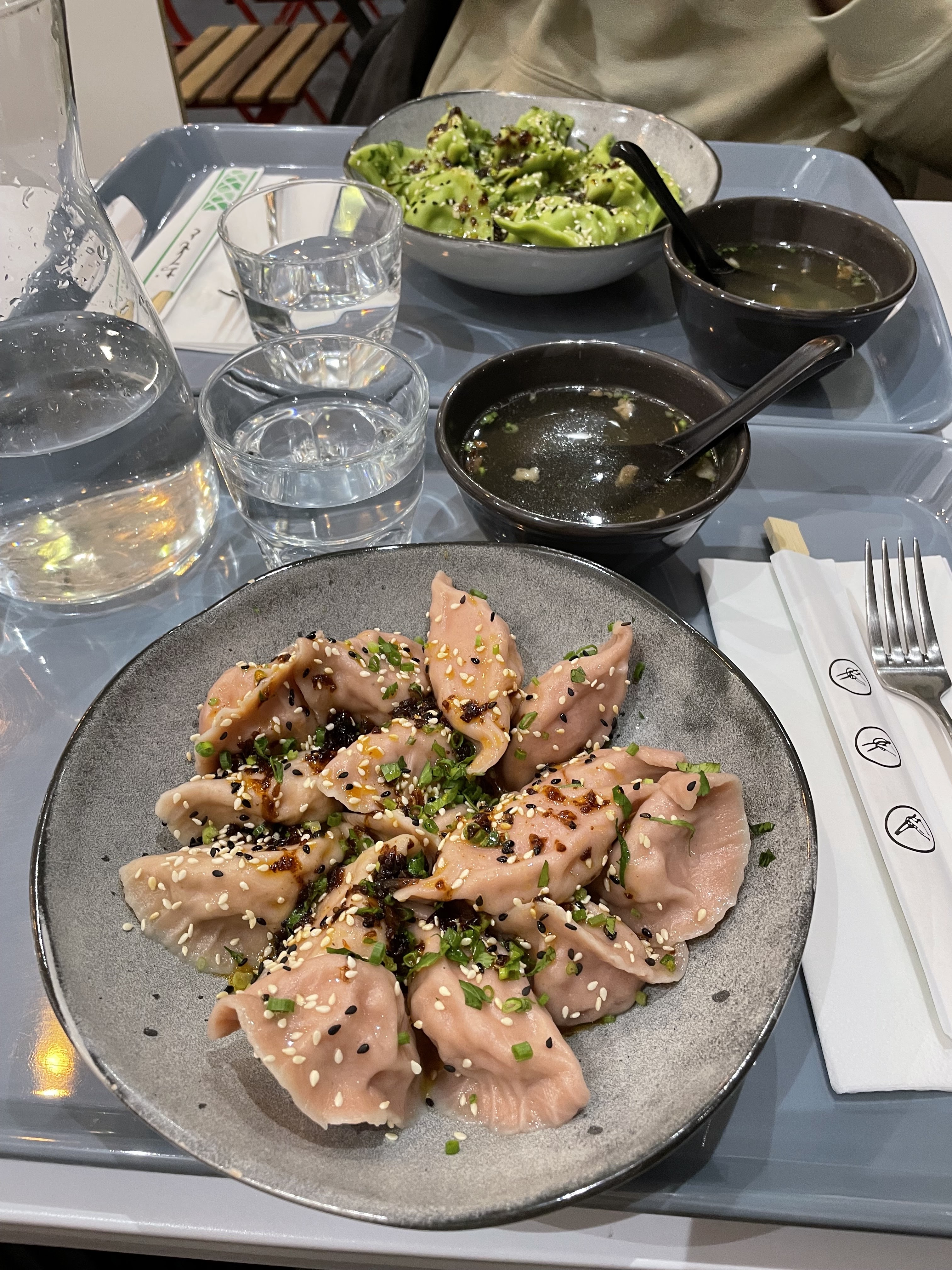 Délicieux ! Bon rapport qualité prix. Cadre sympa, bon accueil. Rapide, jolie présentation. 10 pièces de raviolis pour 9€ et 15 pour 11€80. On peut même choisir ce qu’on veut dans son assiette ! Petite soupe au poulet en entrée, très délicieuse. La sauce était incroyable ! Je sais pas ce qu’il y a dedans mais elle change de la traditionnelle au vinaigre. J’ai goûté et classé selon mes préférences : crevette, porc, végétarien, poulet. Je recommande !