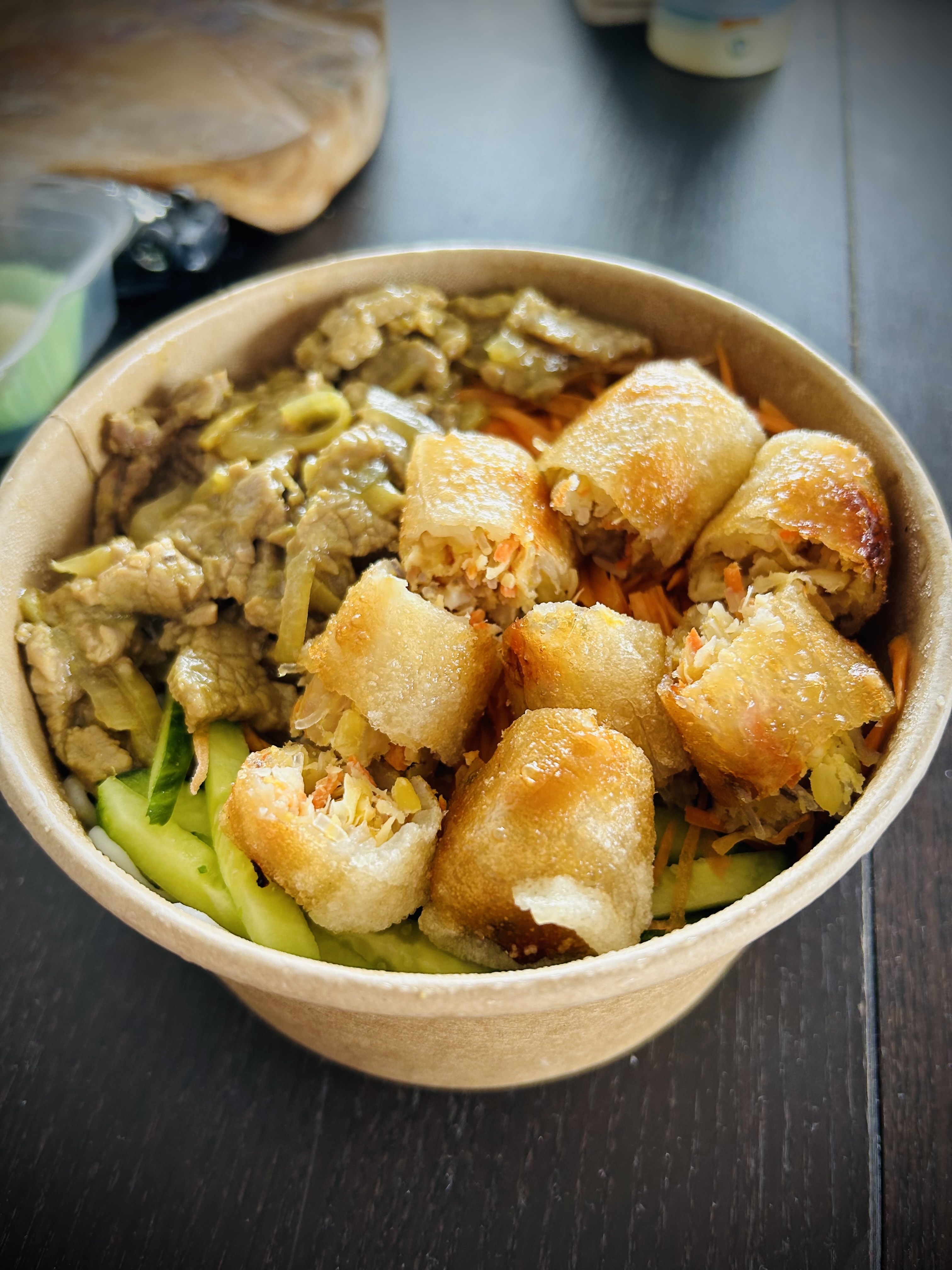 Posté le 20/02/2023 à 17:06"Comme son nom l’indique ce restaurant est un restaurant de type fast food . Ne vous attendez donc pas à de la cuisine gastronomique. Cependant la fraîcheur des produits est au rendez vous . Les présentoirs sont propres et le tout appétissant. J’ai goûté cette fois le bo bun . Vraiment très bon et frais. Manque peut être la sauce cacahuète avec . Rouleau de printemps très frais et on sent bien la menthe . Pour le dessert j’ai pris des mochis au thé vert très bon . Bref le tout pour 12,95€ . Le goût est là la fraîcheur aussi et très bon rapport qualité prix . Accueil très sympathique et souriant. Pratique pour manger entre midi et deux pour ceux qui travaillent sur le secteur . Parking sur l’arrière du restaurant."