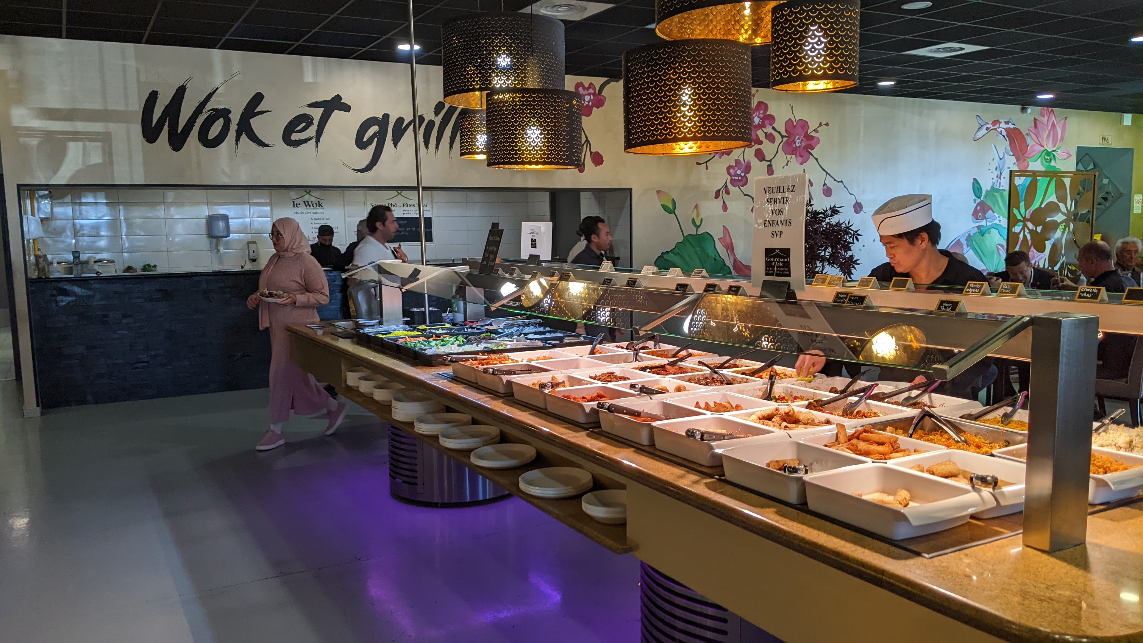 Posté le 04/11/2024 à 13:30"Bon wok a volonté en famille, entre pote voir en amoureux mais ça manque de romantisme car c'est quand même un buffet impersonnel qui est fait pour brasser du monde Sas d accueil/attente correct avec des sièges Énormément de monde Plats très variés mais manque de chauleur pour les vapeurs. Dommage Le wok et le restaurant en général est propre mais la partie cuisine visible est impeccable Les serveurs sont gentils mais courent ... J'ai bien mangé"