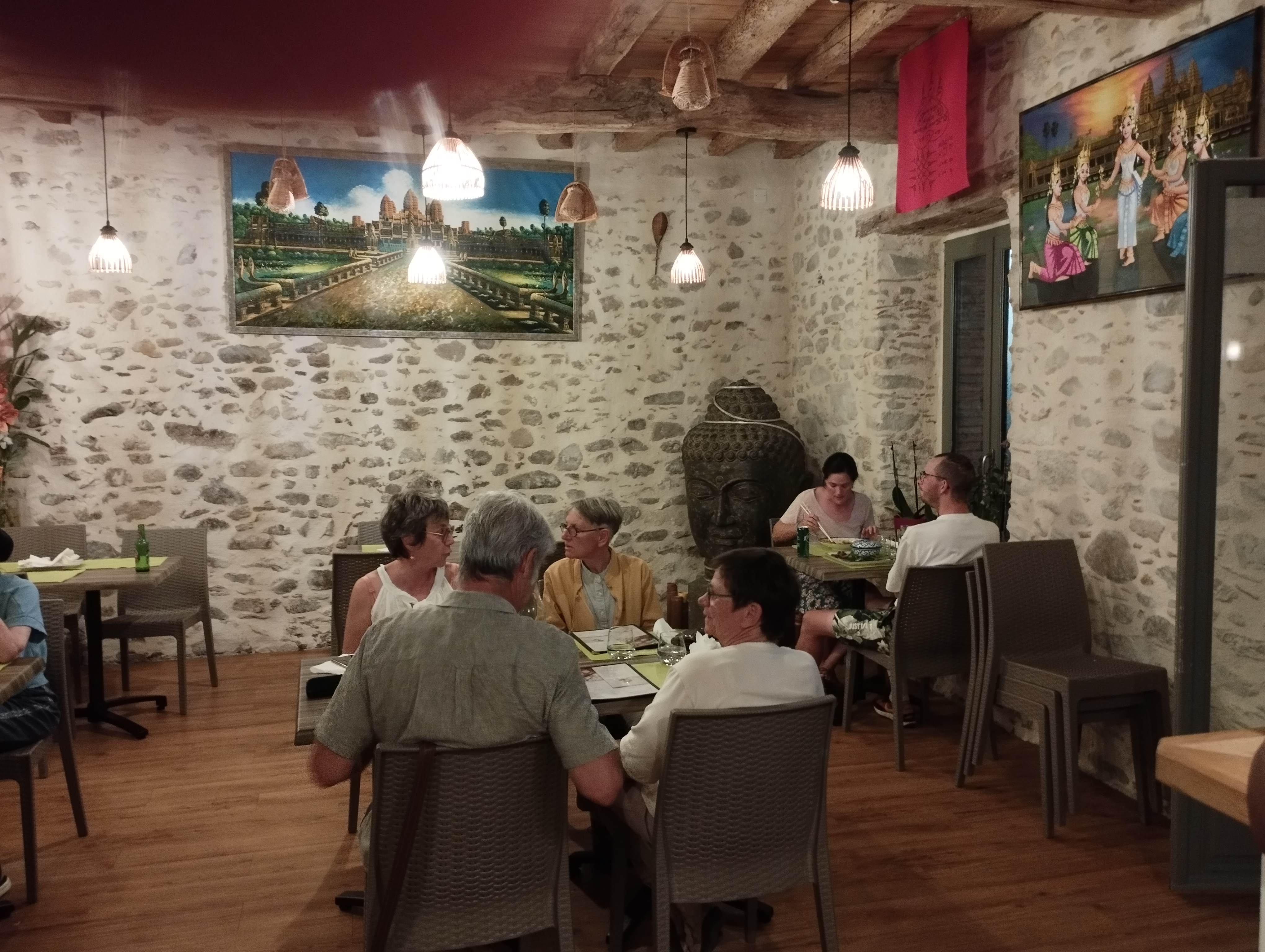 Posté le 24/08/2024 à 06:24"Très bon petit restaurant Cambodgien/Thaïlandais, les plats sont faits maison, et c'est copieux La salle est très cosy avec les pierres au mur et les poutres au plafond"