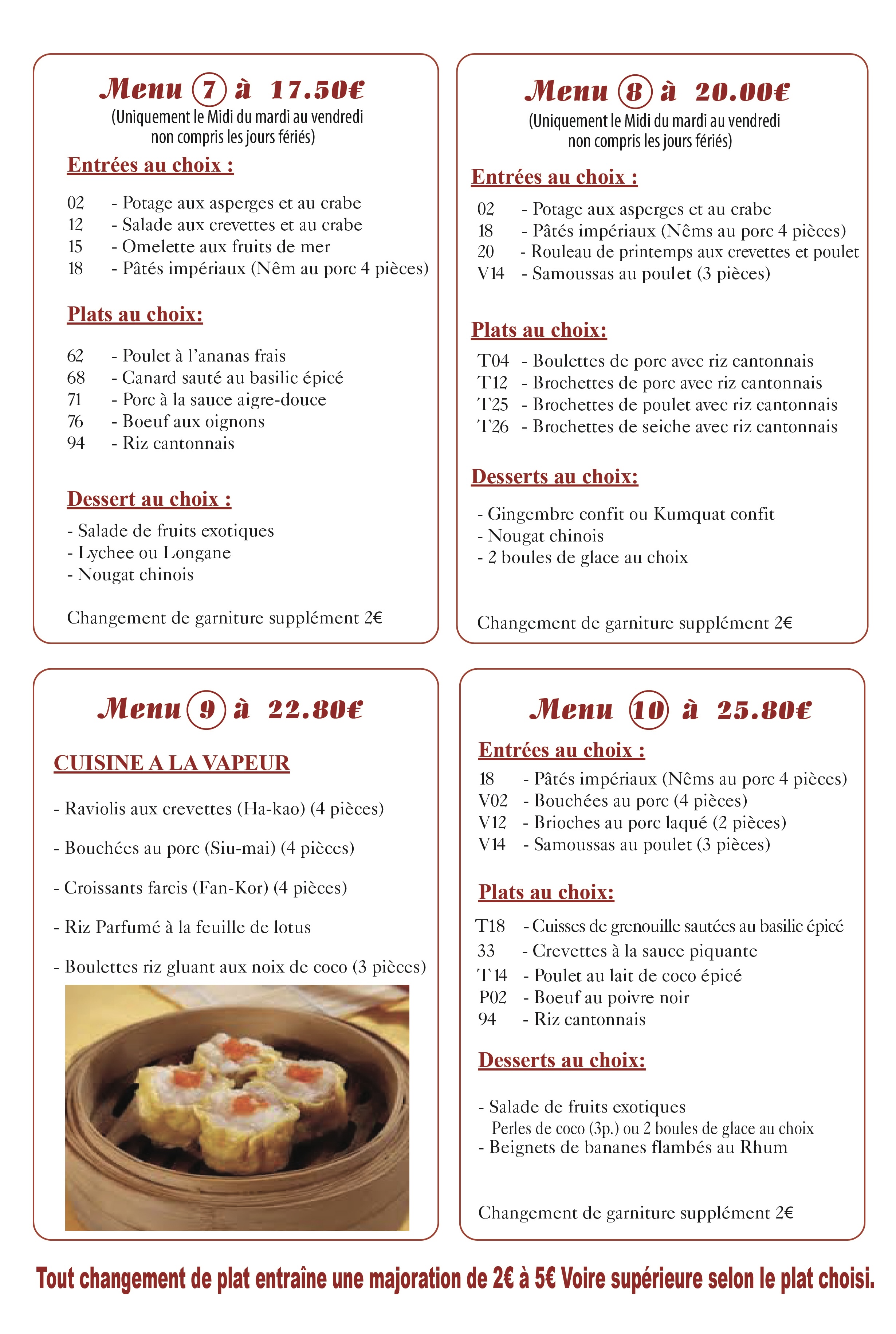 Bonjour Michel, Nous vous remercions de tout coeur pour ces compliments qui nous encouragent beaucoup. C'est une joie de vous accueillir et vous servir à chaque visite. Votre fidélité est notre plus belle récompense et nous espérons continuer à vous satisfaire pleinement avec nos plats maison. Vos suggestions sont les bienvenues, n'hésitez pas à nous écrire ce qui peut être amélioré pour vos prochaines dégustations! Au plaisir de vous revoir pour de bons repas conviviaux avec vos proches, Belle et heureuse année 2022 de la part de toute notre équipe, ✨ - La famille Royal Torcy Restaurant asiatique emblématique depuis 1988 avec ses Chefs Hong Kongais reconnus. www.royaltorcy.fr