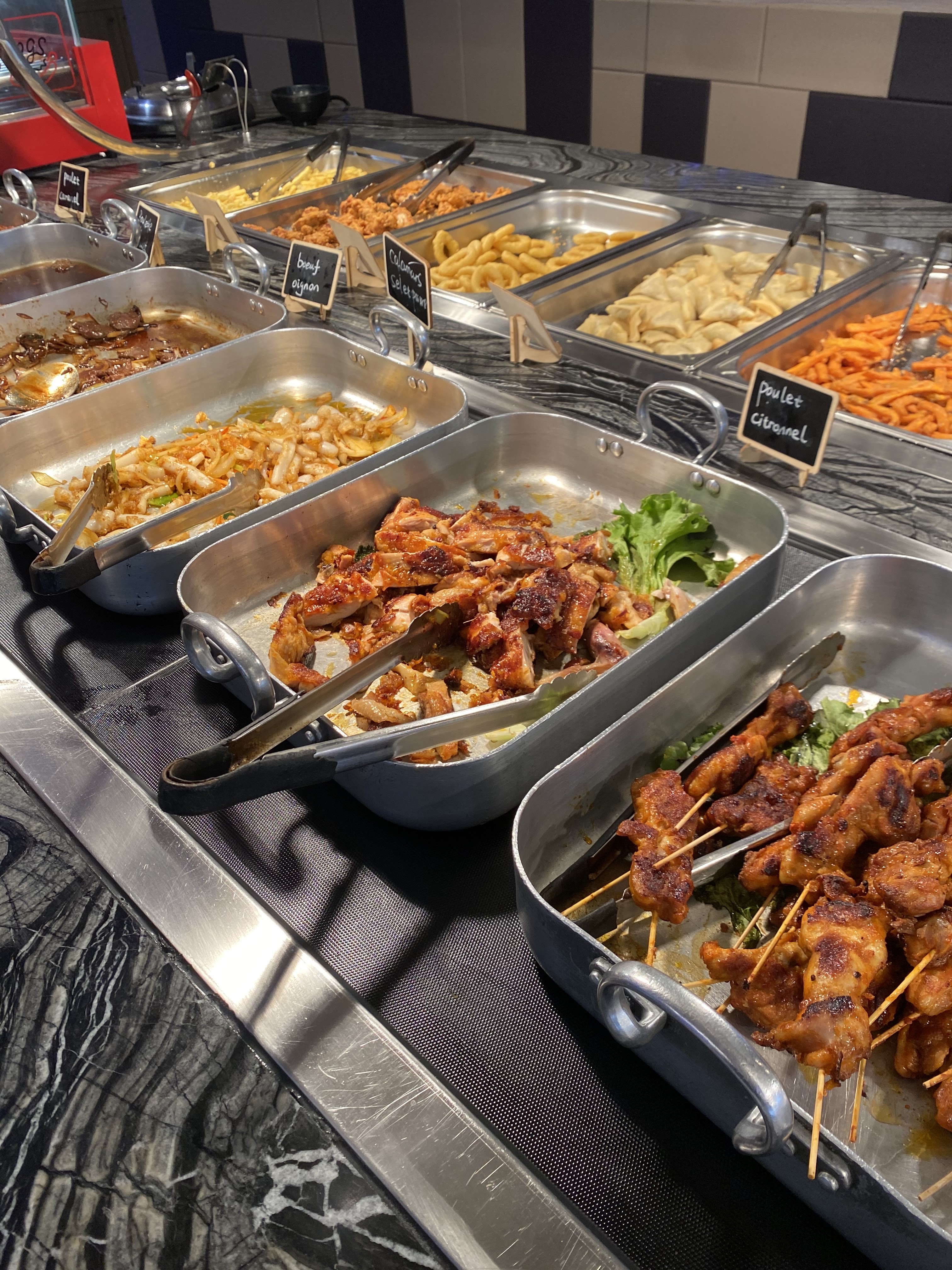 Posté le 23/06/2019 à 21:12"Accueil chaleureux et présentation du buffet par le responsable. Nous y avons dîner le jour de l'ouverture et avons apprécié la décoration et les choix variés du buffet. Les plats sont correctes mais bien meilleur que certains buffet du secteur. Au choix dans le buffet: bar salade, fritures, plats préparés, wok, plancha, sushi, buffet de dessert, viande kebab, fromages, crustacés... Un gros plus sur la variété de poissons disponibles pour le wok et plancha ainsi que le poisson cuit entier en plat préparé. Dommage que les fontaines au chocolat ne fonctionnaient pas ce jour la. Nous étions venu principalement pour le cochon de lait qui selon moi manquait d'assaisonnement et de cuisson au niveau de la peau qui était inmangeable car caoutchouteuse. Nous reviendrons sûrement pour voir s'il y a du mieux et surtout si la qualité reste constante."