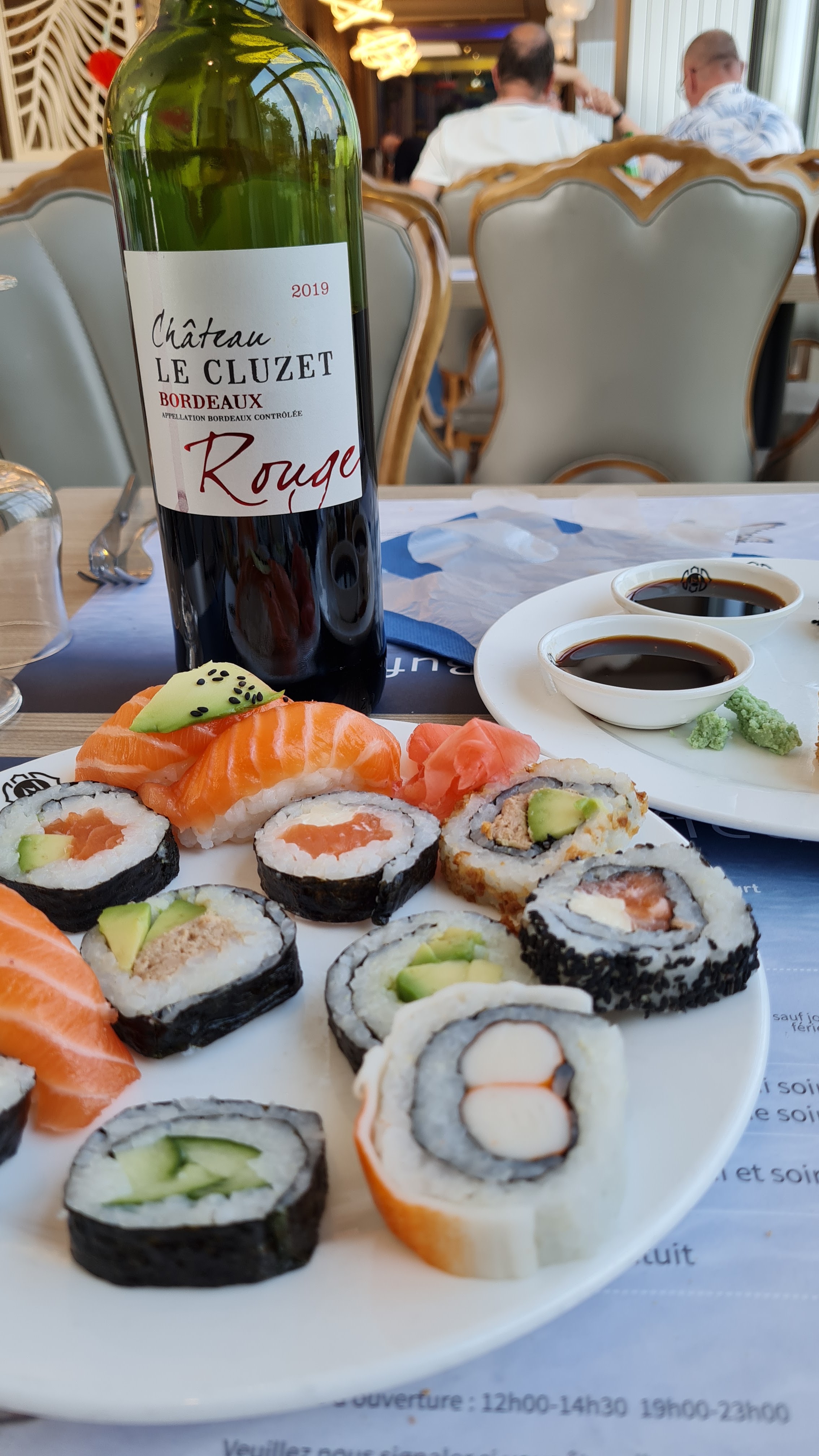 Posté le 15/08/2023 à 16:28"Pour les produits de mer précédent citer, les sushi sont excellents, par contre pour les produits de la mer qui eux sont congelés, j'ai été déçu par le manque de goût. Cela étant dû à ma grande inexpérience des recettes et autres assaisonnement ! Pour le reste plats au poulets savoureux et desserts uniques puisqu'à votre fantaisie ! Équipe à votre service avec un gros plus pour le service.,les cuisiniers n'étant pas francophones. Cepandant toujours à notre service. Facture sans surprises. Merci pour ces belles soirées."