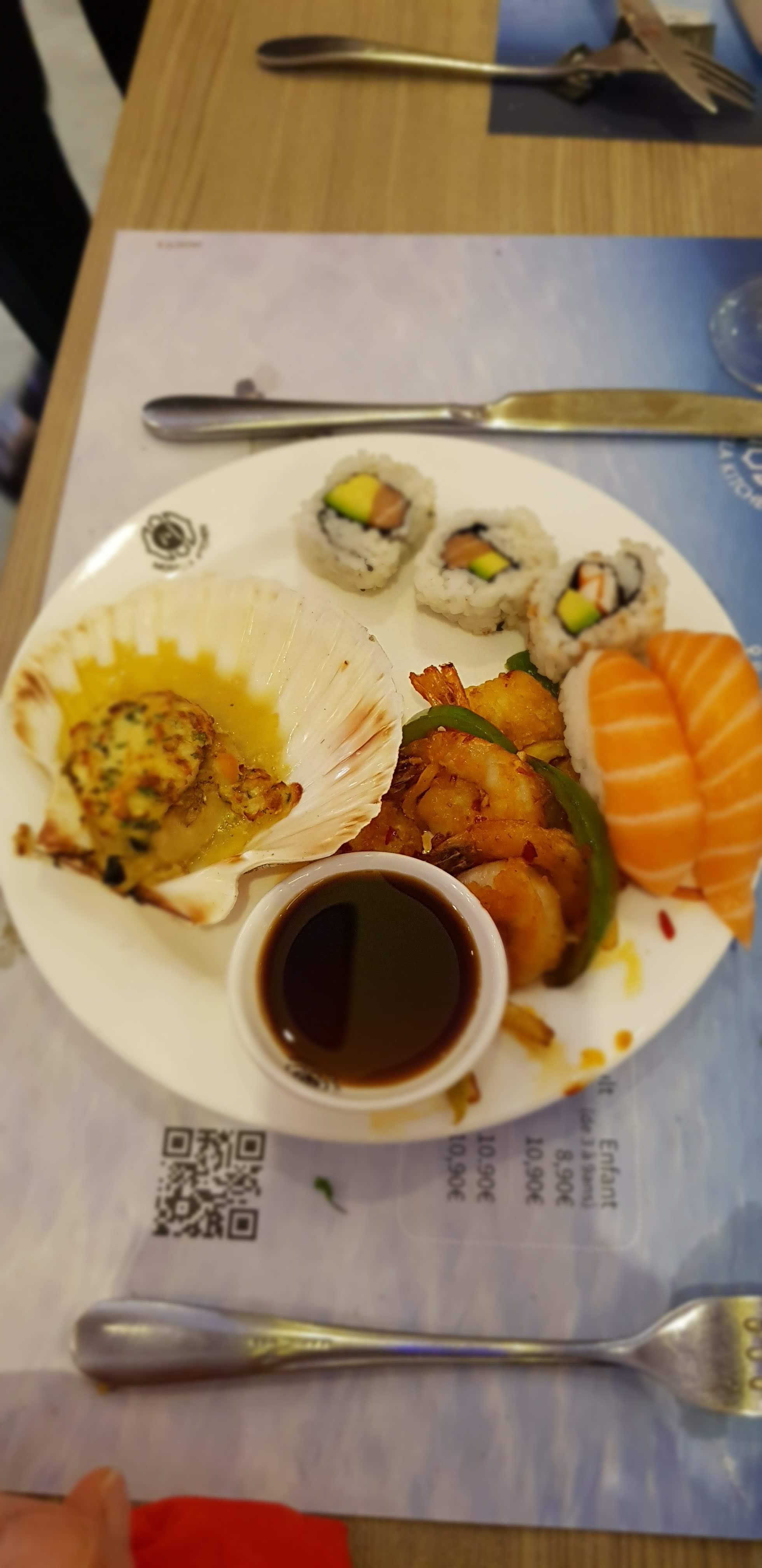 Posté le 15/08/2023 à 21:51"Salle de jeux pour enfants au fond à côté des wc , c’est fort sympathique pour occuper les enfants. J’ai pris en photo les prix. Les plats variés sushis, makis, wok, grillade etc…"