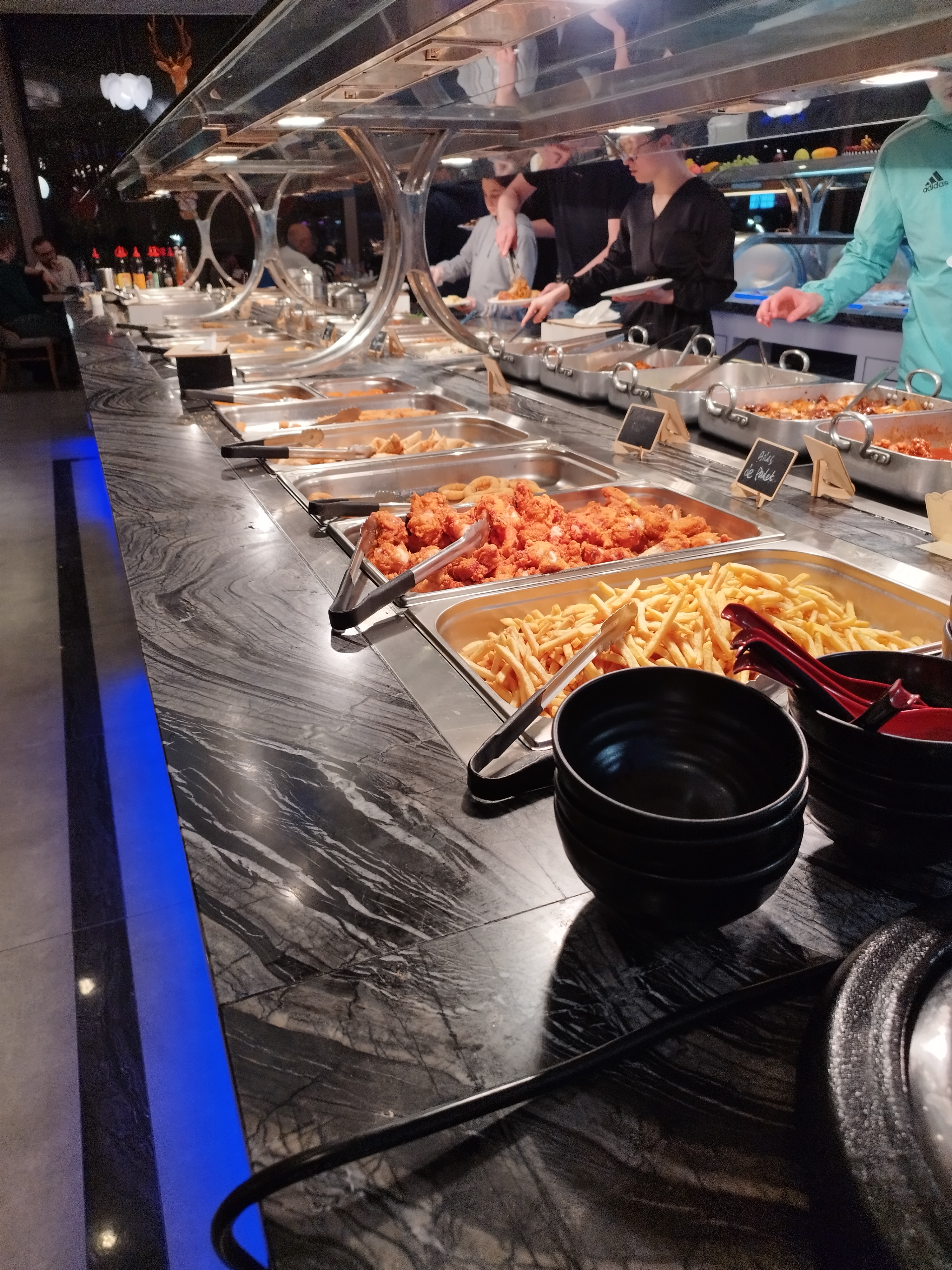 Posté le 03/02/2020 à 21:27"Bon buffet avec un large choix. Le wok et très bon avec un choix de légumes, viandes et nouilles très variés. Petit bémol sur le buffet chaud qui n'est pas toujours chaud. Le services et impeccable et le personnel accueillant et sympathique."