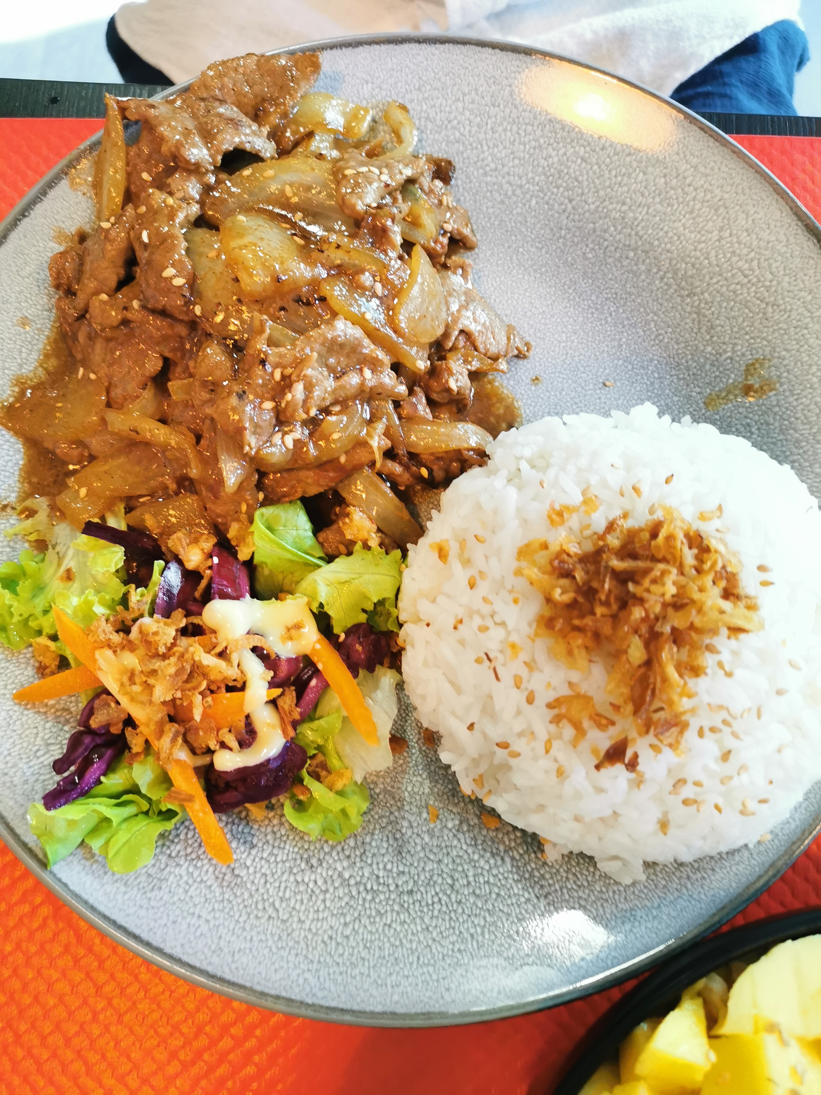Posté le 16/05/2023 à 11:03"J'y suis allé avec 6 collègues de boulots et nous nous somme régalés, et pour vraiment pas cher (1 seul plat de la carte dépasse les 10€ 🤯). Personnellement j'ai pris le poulet au curry avec riz parfumé car je n'aime pas trop la cuisine asiatique mais pour un poulet au curry et riz j'ai adoré ct l'un des meilleur curry que j'ai mangé de ma vie. Le resto est petit il y a une quinzaine de place je dirais dcp il y a une bonne ambiance on s'entend bien et il y a de la musique, on entend aussi avec amusement les viandes qui crépitement sur le feux sa donne encore plus faim. Le service est un poil long mais je met quand même 5 étoiles car ce n'est pas trop dérangeant, au contraire sa augmente notre satisfaction de voir le plat arriver et de le déguster avec passion tellement s'en est bon. Merci à la serveuse très gentille qui m'a donné une fourchette parce que je suis pas très à l'aise avec les baguettes (ustensiles par défaut)."