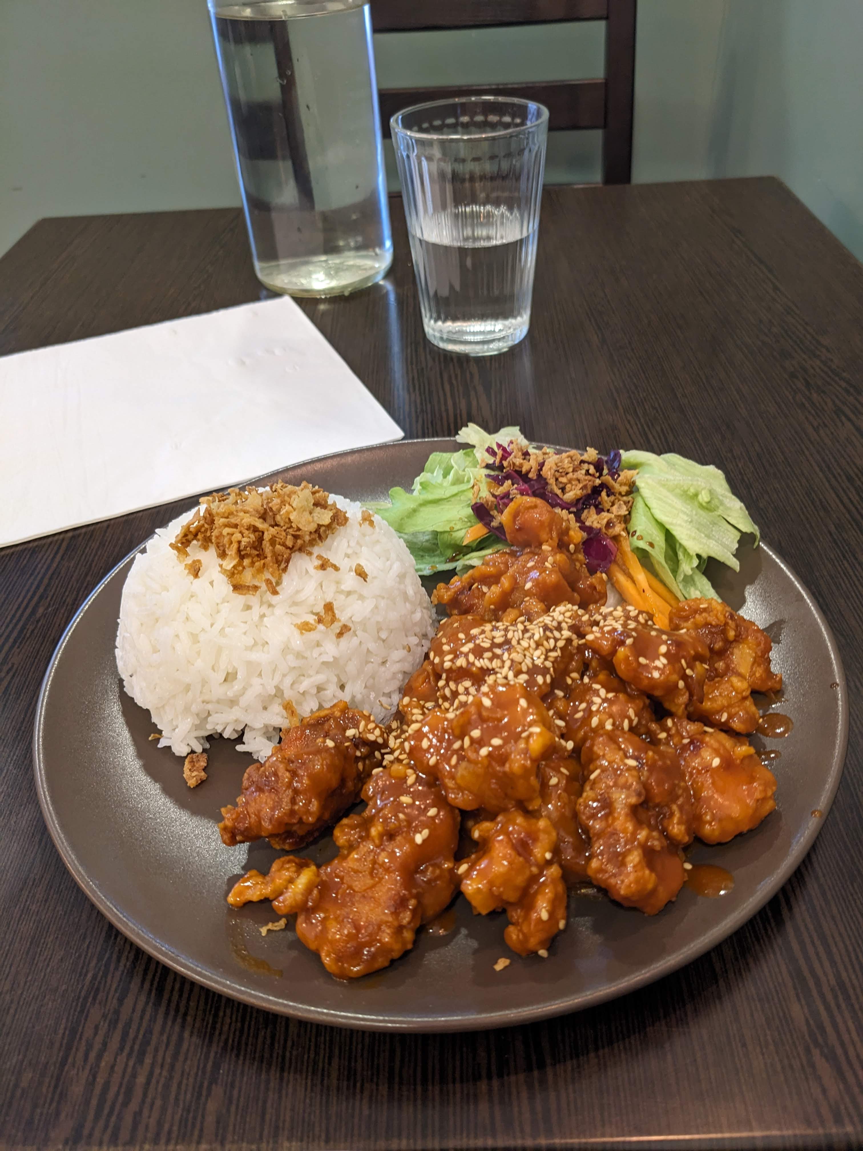 Posté le 23/01/2024 à 21:18"Petit restaurant convivial et très très sympa. La cuisine est excellente ET abordable. La présentation est jolie et la qualité des produits est incroyable. Je recommande fortement le riz et poulet croustillant général tao avec un p’tit coca à côté ;)"