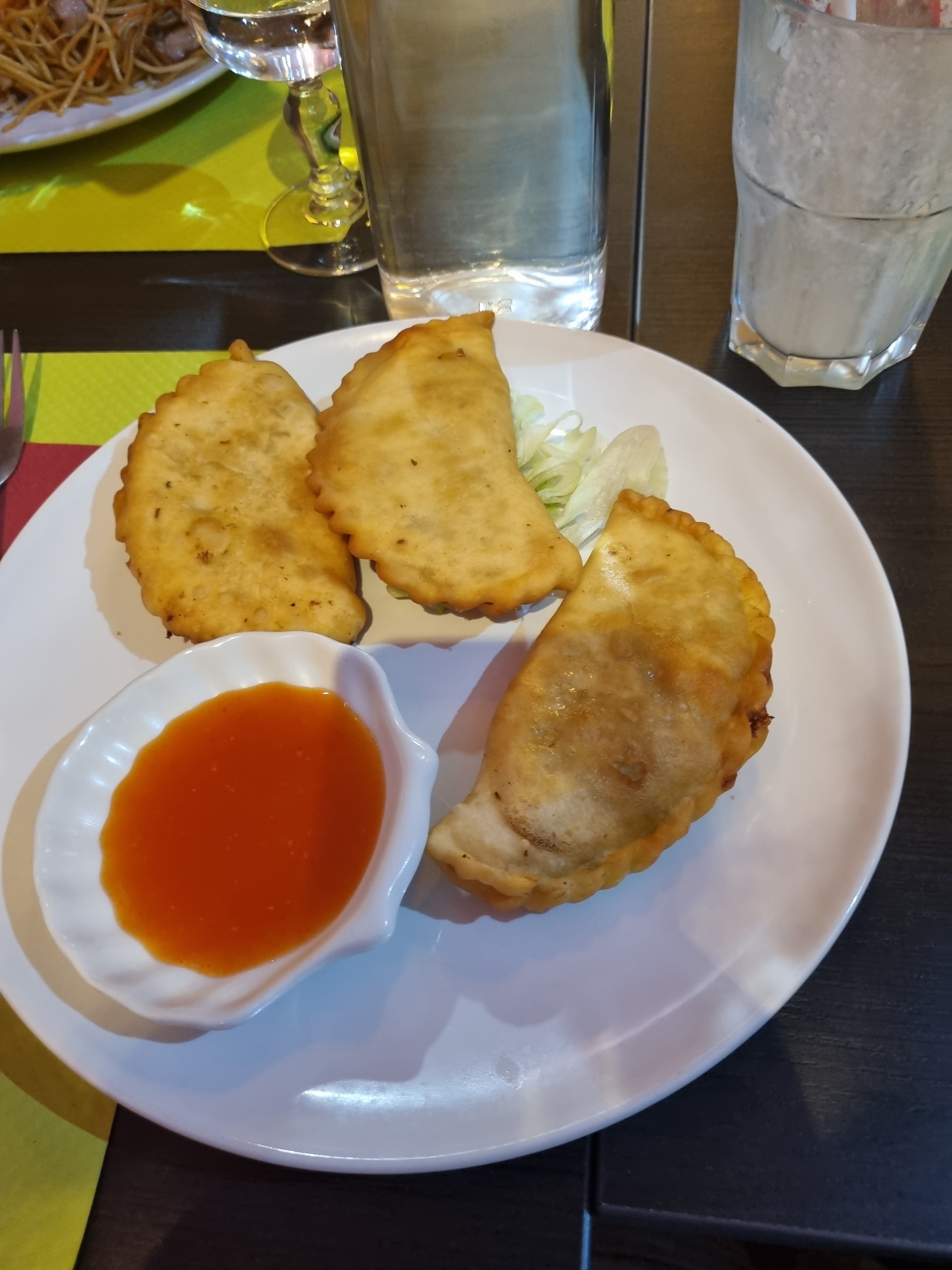 Encore une première expérience réussie de cuisine exotique pendant ces vacances :-). Tout était excellent. Grande portion de soupe en entrée. Délicieuses nouilles aux légumes. Notre fils a adoré la soupe avec la viande et les pâtes. Mon épouse a beaucoup aimé les ravioles et les galettes frites fourrées aux légumes. Service sympathique par celles qui sont probablement les filles des restaurateurs.