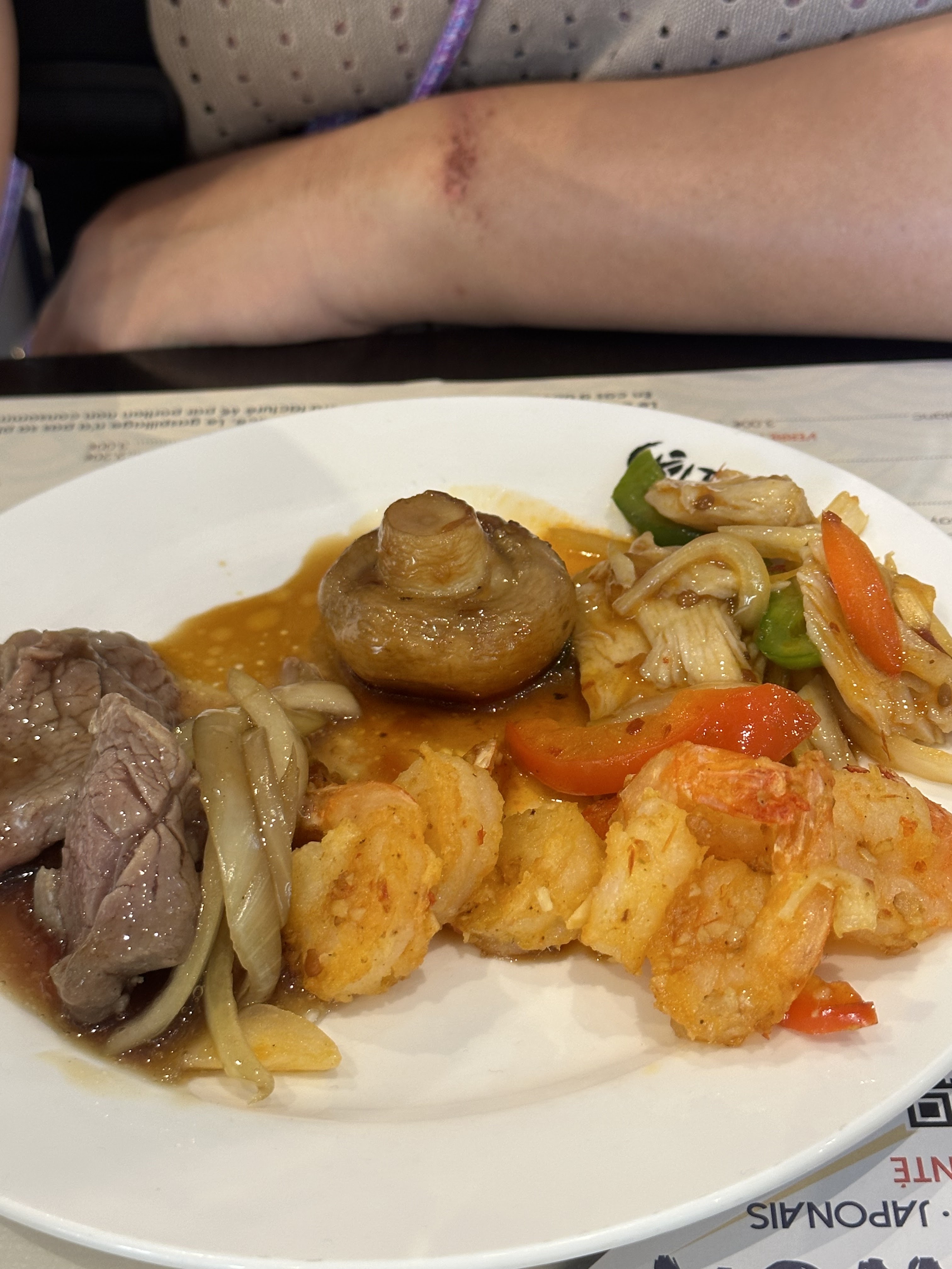 Posté le 05/11/2024 à 07:38"Petit restaurant à volonté de quartier buffet à volonté pas très grand mets bien rempli et pas trop cher 15, 90 par contre il y a des efforts à faire tous les plats sont pratiquement froids heureusement qu'il y a un petit micro-ondes rouge au-dessus des glaces pour réchauffer tout ça et les crevettes était tiède non pas froide ni chaude mais tiède ce qui est pas mangeable des glaçons sont à prévoir pour laisser les crevettes bien fraîches car sinon des crevettes tiède c'est vraiment pas terrible il y a un choix impressionnant de sushi mais là ce que avec du saumon très peu sang et je n'ai pas trouvé la sauce soja salée ou sucrée il n'y en avait pas sinon tout le reste était pas mauvais nous avons bien mangé et pour le prix c'est très bien par contre des crevettes froides sont meilleures que les crevettes tièdes je tiens encore le préciser et un deuxième micro-ondes serait pas non plus à négliger ça éviterait l'attente surtout lorsque tout le monde réchauffe son plat"