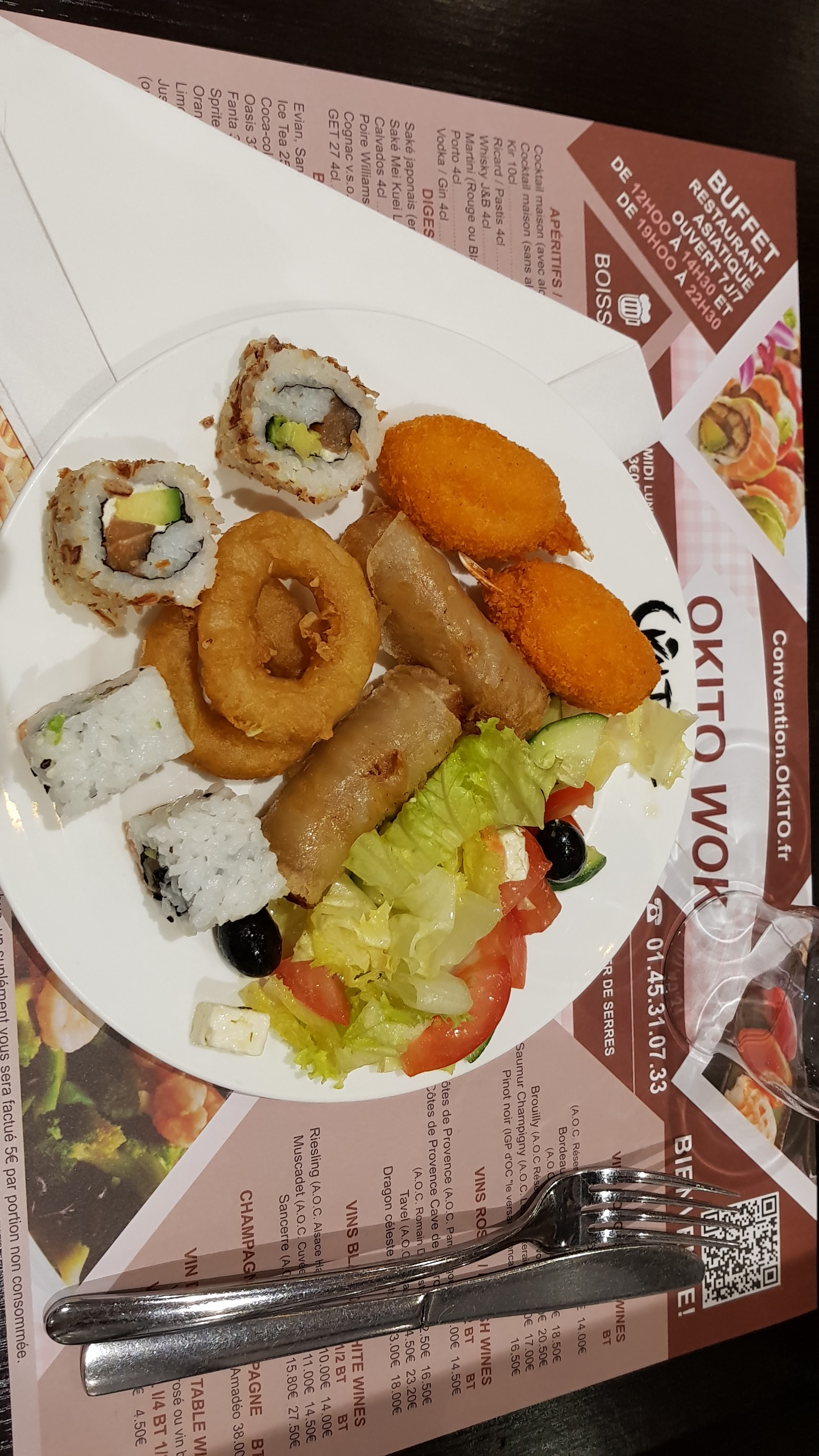 Posté le 01/04/2023 à 17:48". RESTAURANT = OKITO WOK EXCELLENT = BUFFET à VOLONTÉ ! 👍 ( CHINOIS + JAPONAIS ) ( UN des MEILLEURS de PARIS ! ) ÉNORMÉMENT de CHOIX !!!! 😃 = Entrées, Salades, Soupe, Légumes = Sushis, Makis, Viande, Poissons = Desserts, Gâteaux, Fruits, Glaces + WOK = Viande, Poissons et Légumes Je RECOMMANDE à 100 % ! 😉 ."