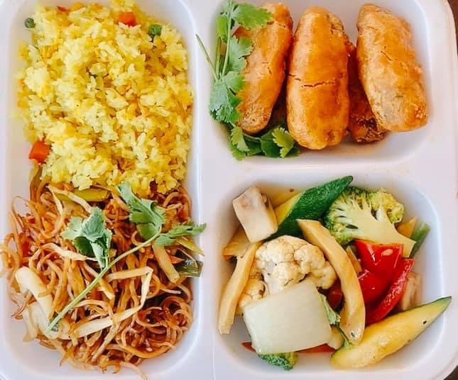 restauration rapide choix entre grand ou petite assiette riz ou nouille sauté nems que aux légumes poulet,boeuf, poisson ou porc dommage que le boeuf soit si épicé beignet de poulet et ailes de poulet. dommage qu'il n'y ai pas plus de choix. encaissement rapide