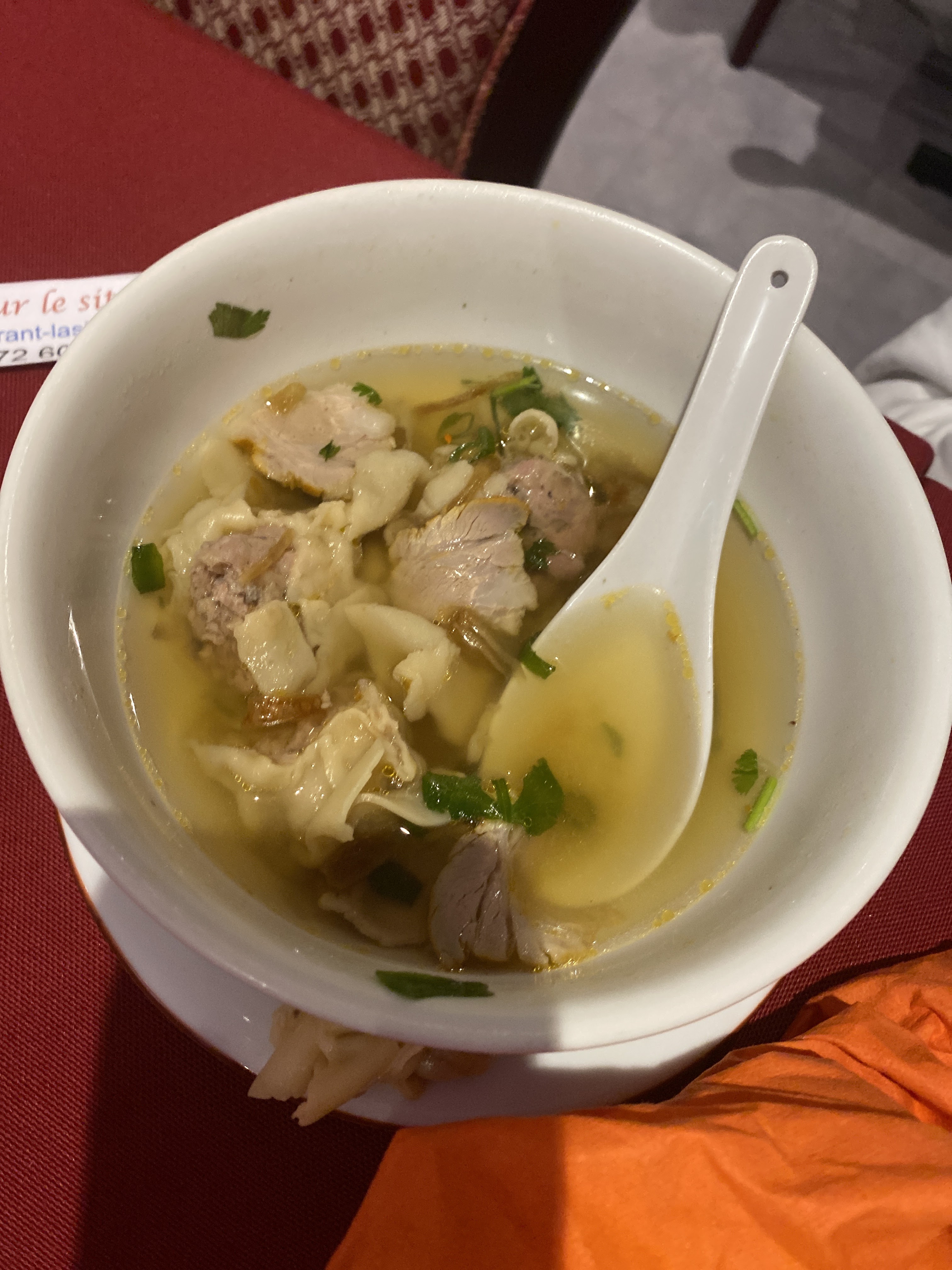 Posté le 15/11/2024 à 22:12"Produits frais et très parfumés. Très bonne soupe à 9 euros et poulet au curry à 12 euros. Musique douce de Chine du sud limite Thaïlande. Très bonne adresse."
