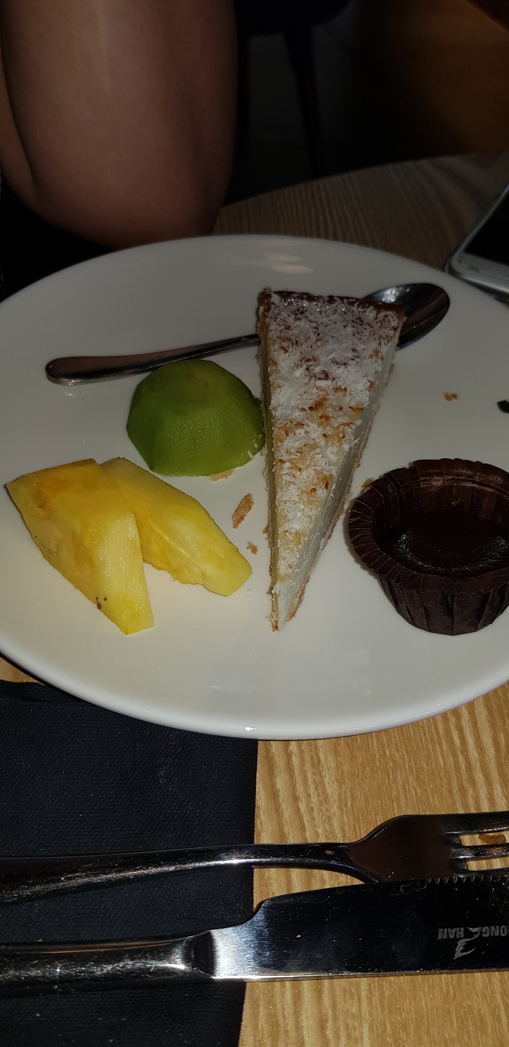 Tres bonne qualité par rapport au prix pour une première fois il y a juste le personnel qui pourrait avoir tous le même teeshirt ou de la même couleur,la personne de la plonge qui traverse le restaurant pour récupérer les assiettes ça laisse à désirer il pourrait porter une tenue correcte et je pense qu'il faudrait changer l'emplacement pour qu'il récupère les couverts,il faudrait un nettoyage régulier des toilettes sinon a par ça la nourriture est bonne à part le poulet caramel qui ressemble à un poulet avec de la sauce barbecue sinon très accueillant