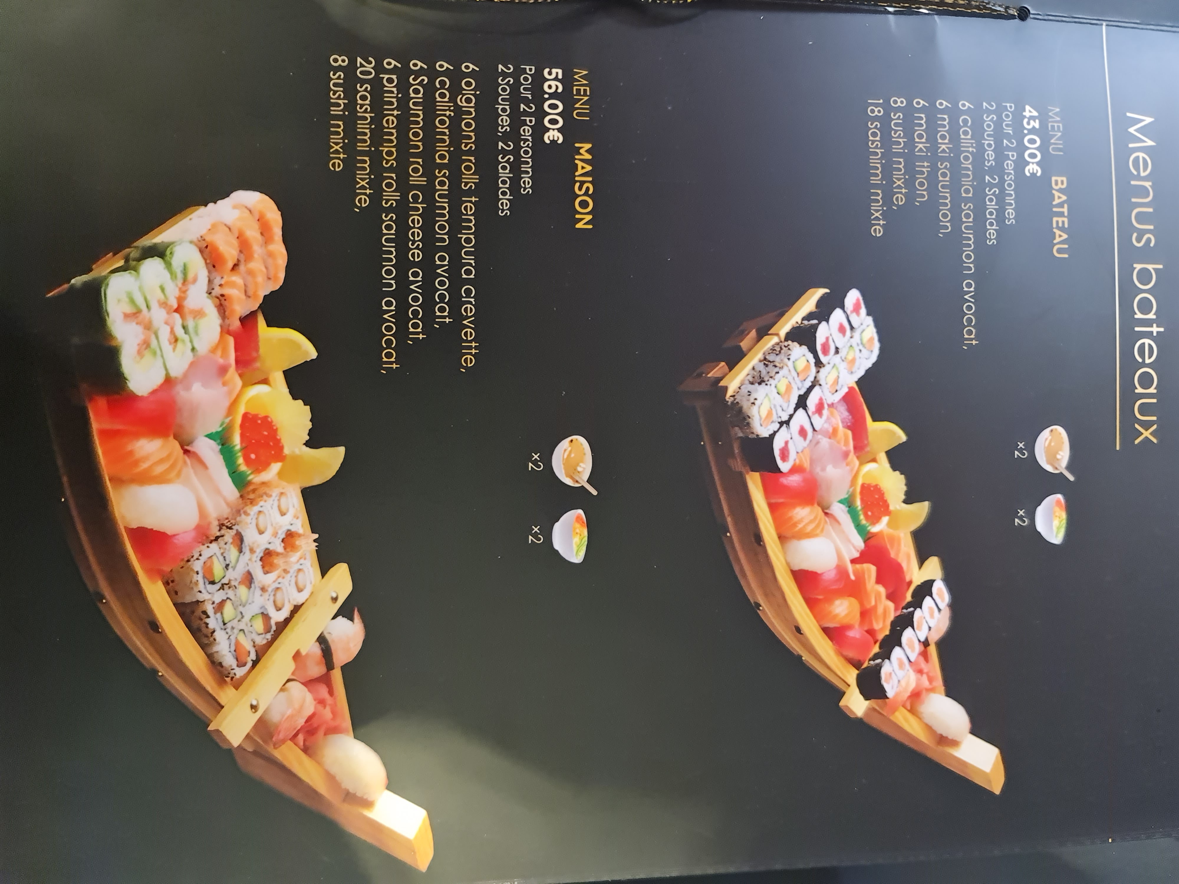 Posté le 31/03/2022 à 10:22"Très bon, copieux, très bonne qualité, bien reçu, joli cadre tout y est . Notre nouveau restaurant de sushis ! Nous sommes super content ! Mercii"