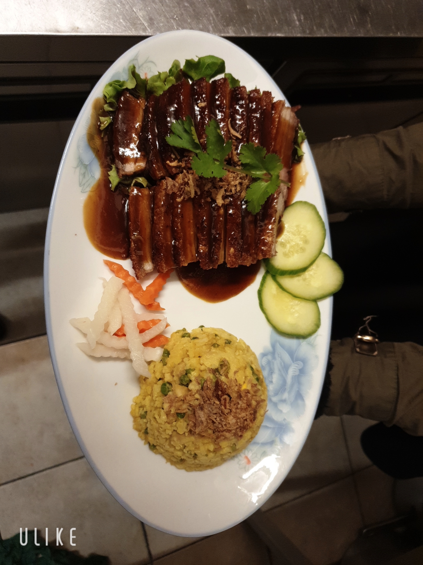 Nous sommes venus un dimanche. La déco est à revoir. La salle était vide, on aurait dû ce poser la question pourquoi ? Des enfants en pyjamas joueraient à côté.Nous avons pris un poulet braisé et un poulet croustillant avec un riz cantonnais qui n'en était pas un. À l'arrivé de mon assiette, le riz était jaune avec des carottes et des petits morceaux de poulet, je demande pourquoi mon riz est comme ça et on me répond que le riz cantonnais est hallal. Donc mauvaise surprise. Tout était très sec. Le service était nickel.