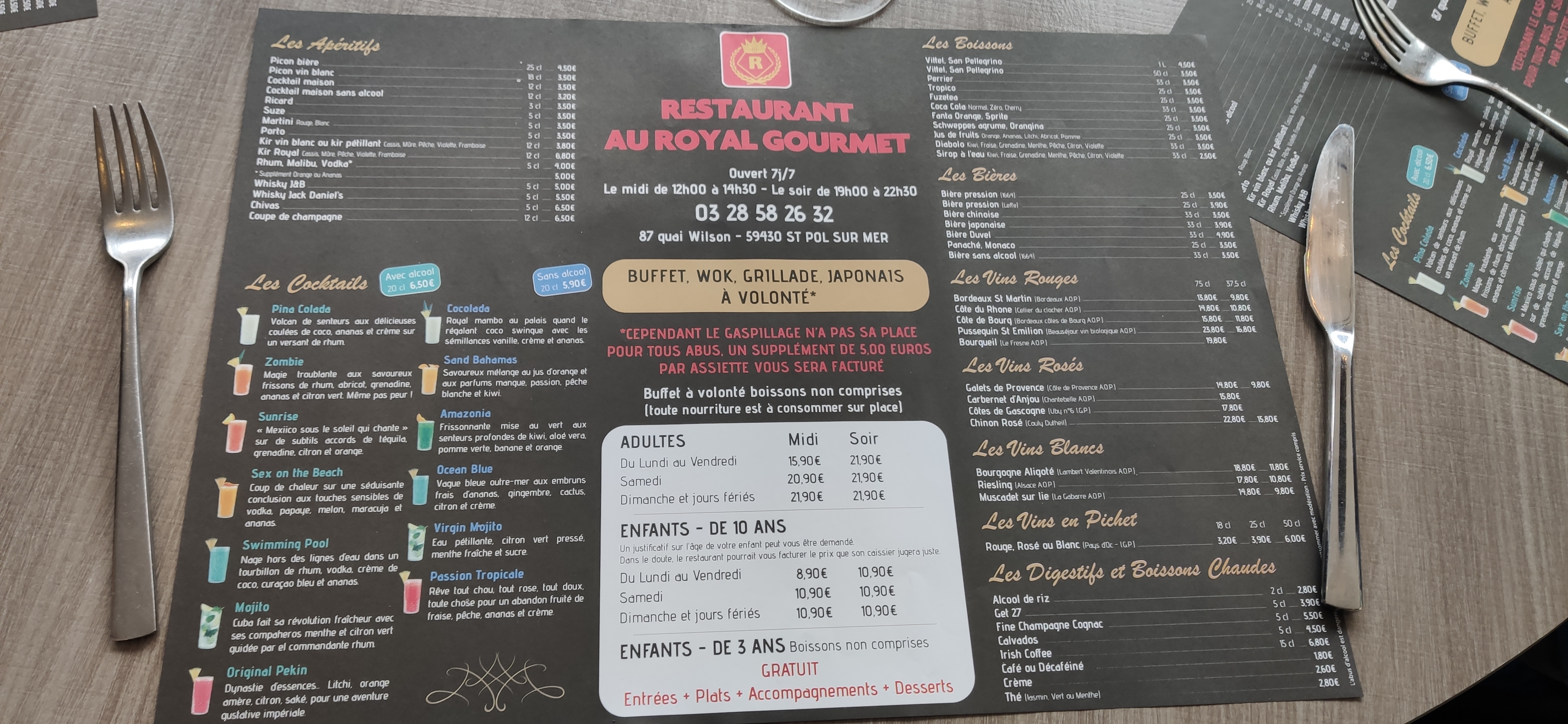 Posté le 11/09/2021 à 19:48"J'ai passé une agréable soirée Un buffet complet, un prix raisonnable 60 euro pour 2 personne. Pour u n buffet à volonté avec une multitudes de choix . Les boissons sont un peu élevé, mais il faut bien qu' il fassent leur marge aussi. Je conseille grandement"