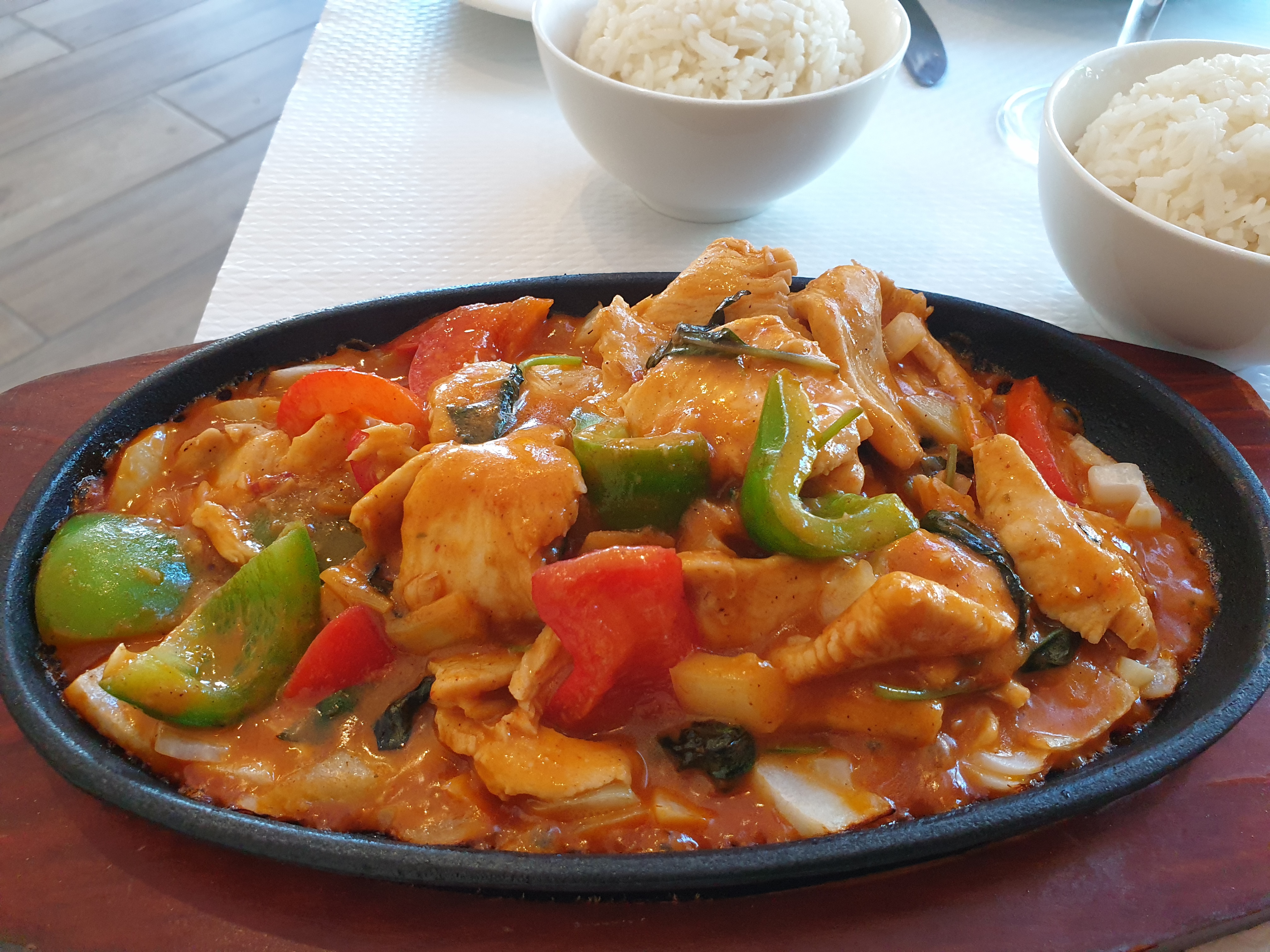 repas délicieux, entrée soupe au poulet, suivie d'un curry thaï au canard et nouilles, bière chinoise, parfait, le service était très sympathique et attentionné, nous reviendrons certainement ici.