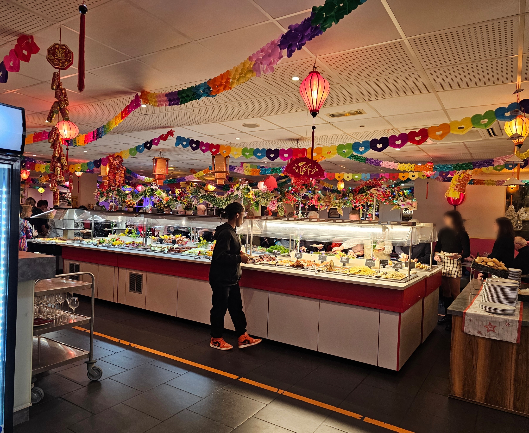 Posté le 25/01/2018 à 13:28"Nous y sommes allés ce week-end et beaucoup de monde Buffet correct mais il ne faut pas arriver très tard car cela se vide et après on manque de choix Produits corrects mais sans plus Produits pas assez chaud à mon goût Quand aux desserts quasi innexistants : banane, raisins, salade de fruits, glaces Je pense qu'en Asie il y a d'autres desserts que ça ! Un peu déçue"