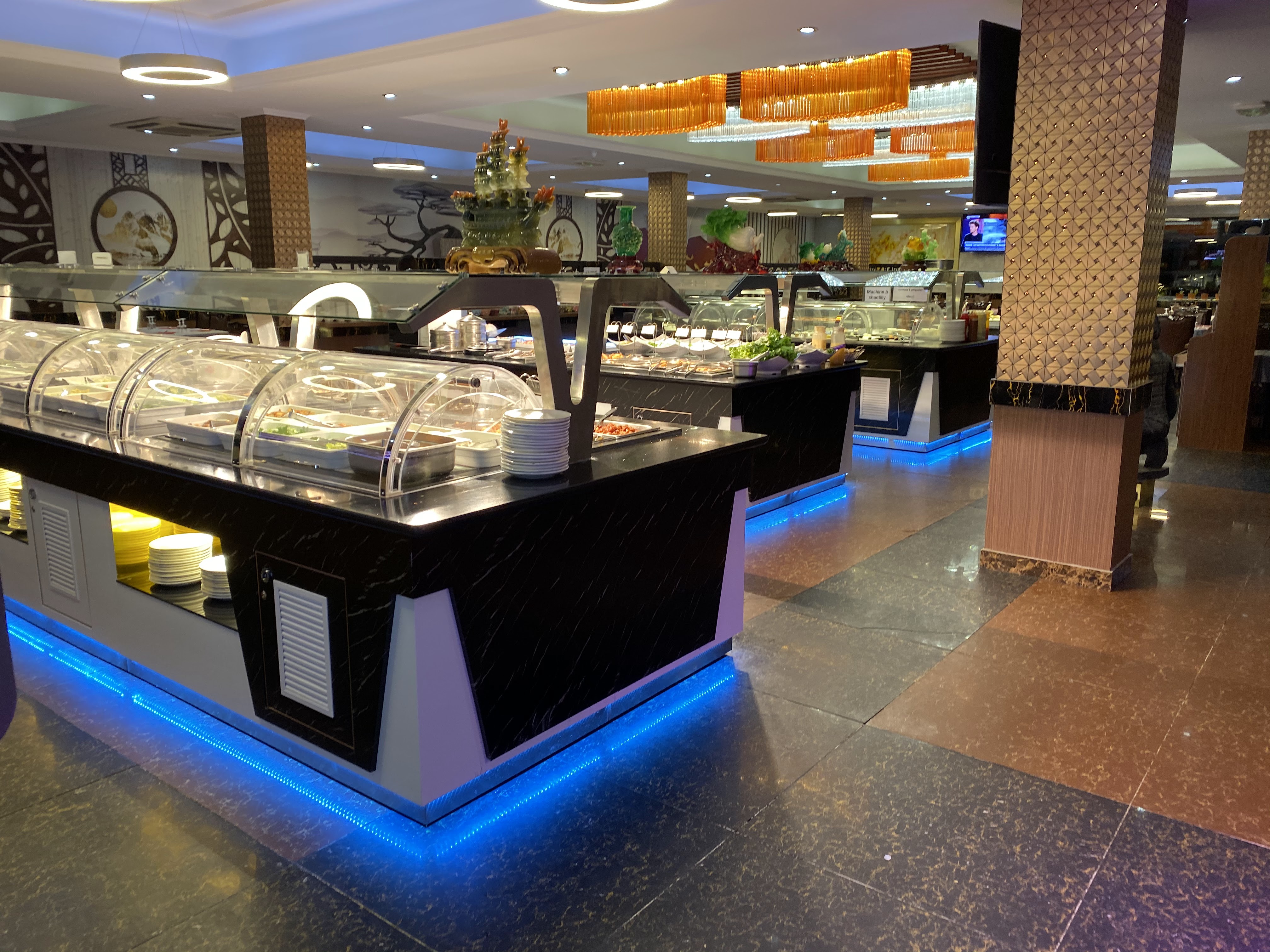 Mauvais accueil et 0 sourire, j,ai demandé 3 fois pour qu enfin quelqu un passe prendre les assiettes , eau chaude , qualité de service à revoir, pas d ambiance , assietes sales et petites , une mauvaise odeur, et prix très élevé par rapport à la qualité ! Aucun serveur n est souriant ! Franchement c est la première fois que je déconseille un buffet !