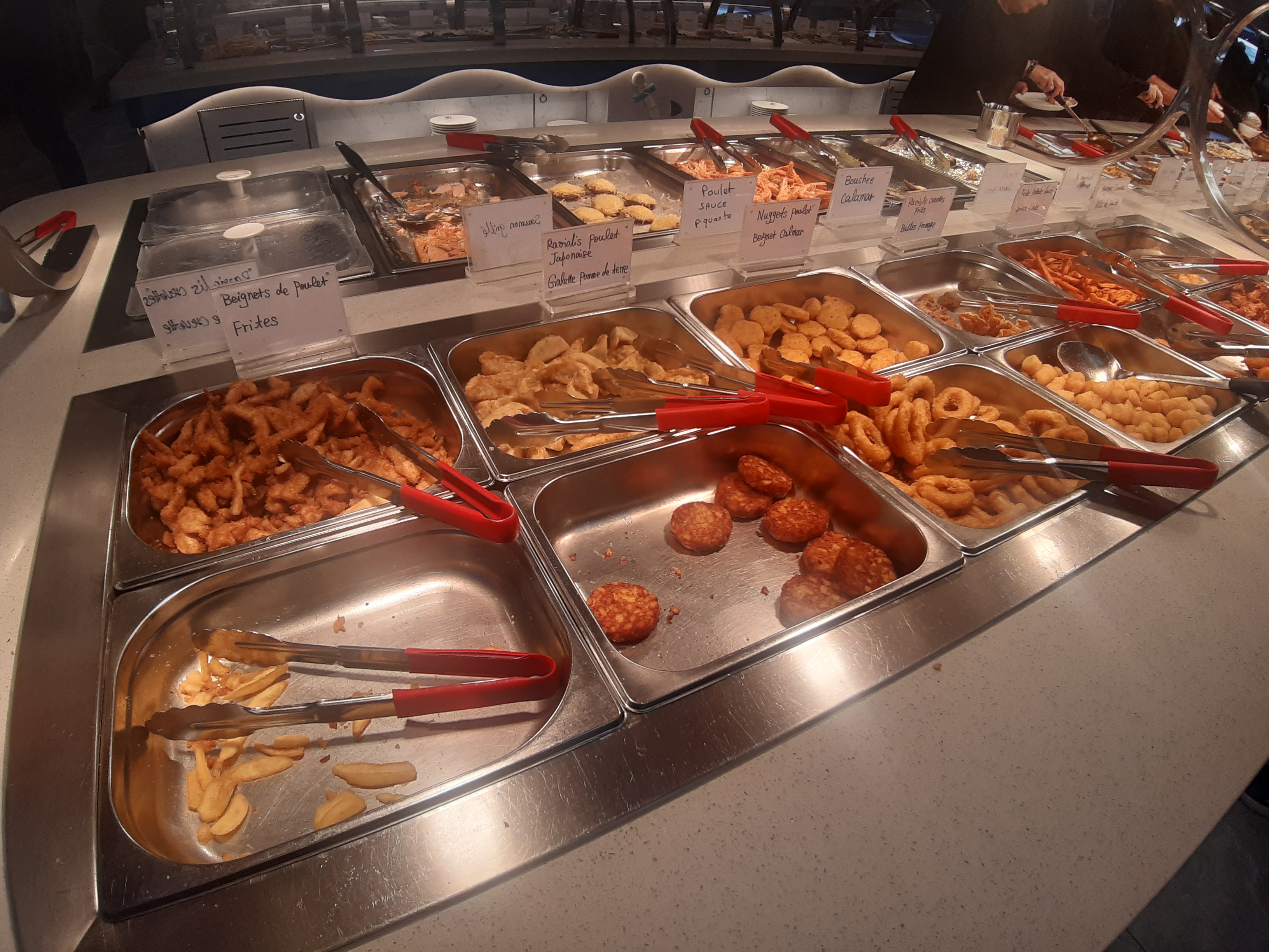 Qualité des aliments ÉPOUVANTABLES, j’ai rarement mangé aussi mal, l’eau avait un goût + prononcé que la plupart des aliments présent sur les buffets, des morceaux d’os absolument partout dans les viandes, j’ai même trouvé un os dans les nuggets, Malgré tout, un choix limité, pas frais, souvent pas assez cuit, c’était froid et gluant pour les morceaux de poulet, j’ai été sincèrement traumatisé, et mon mari a été chamboulé, je vous demande vraiment de ne plus mettre les pieds dans ce « mega buffet des monstres » et 25€ par personnes pour ça ? C’est comme enfoncer 25€ dans la bouche d’un enfant. Désemparé, affligé, effrité, notre lundi soir gâché, notre semaine gâchée, obligé d’aller chercher en urgence un casse dalle au VIVAL pour combler ça……………………….. seul point positif, les trois petits points après les crevettes…