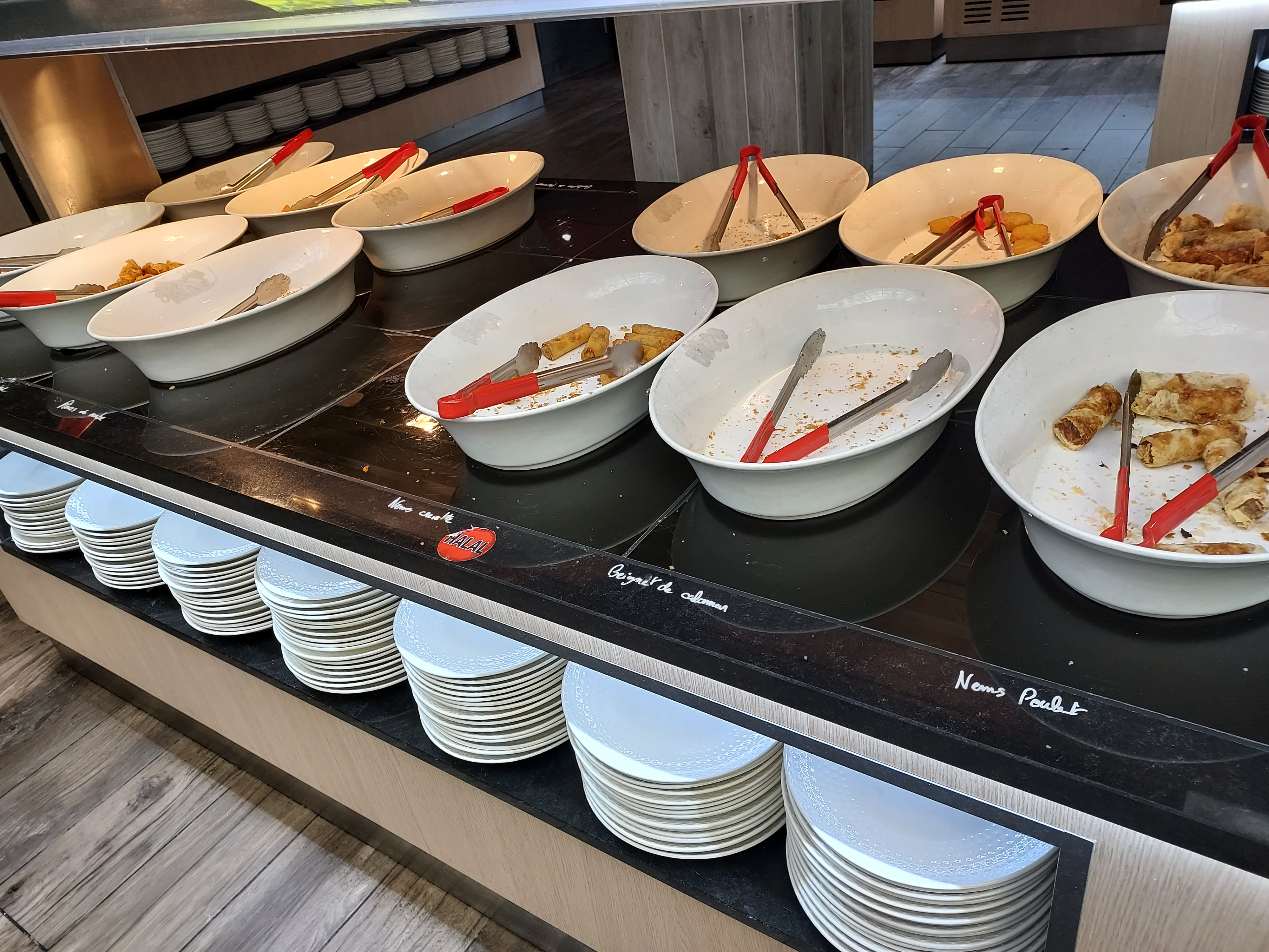 Posté le 22/05/2024 à 14:28"Bcp de choix Bonne cuisine Les gros points négatifs : enfants et adultes touches tout avec les doigts !!!!! Et aucune surveillance !!!! Les gens mangent tout en se servant !!!!"