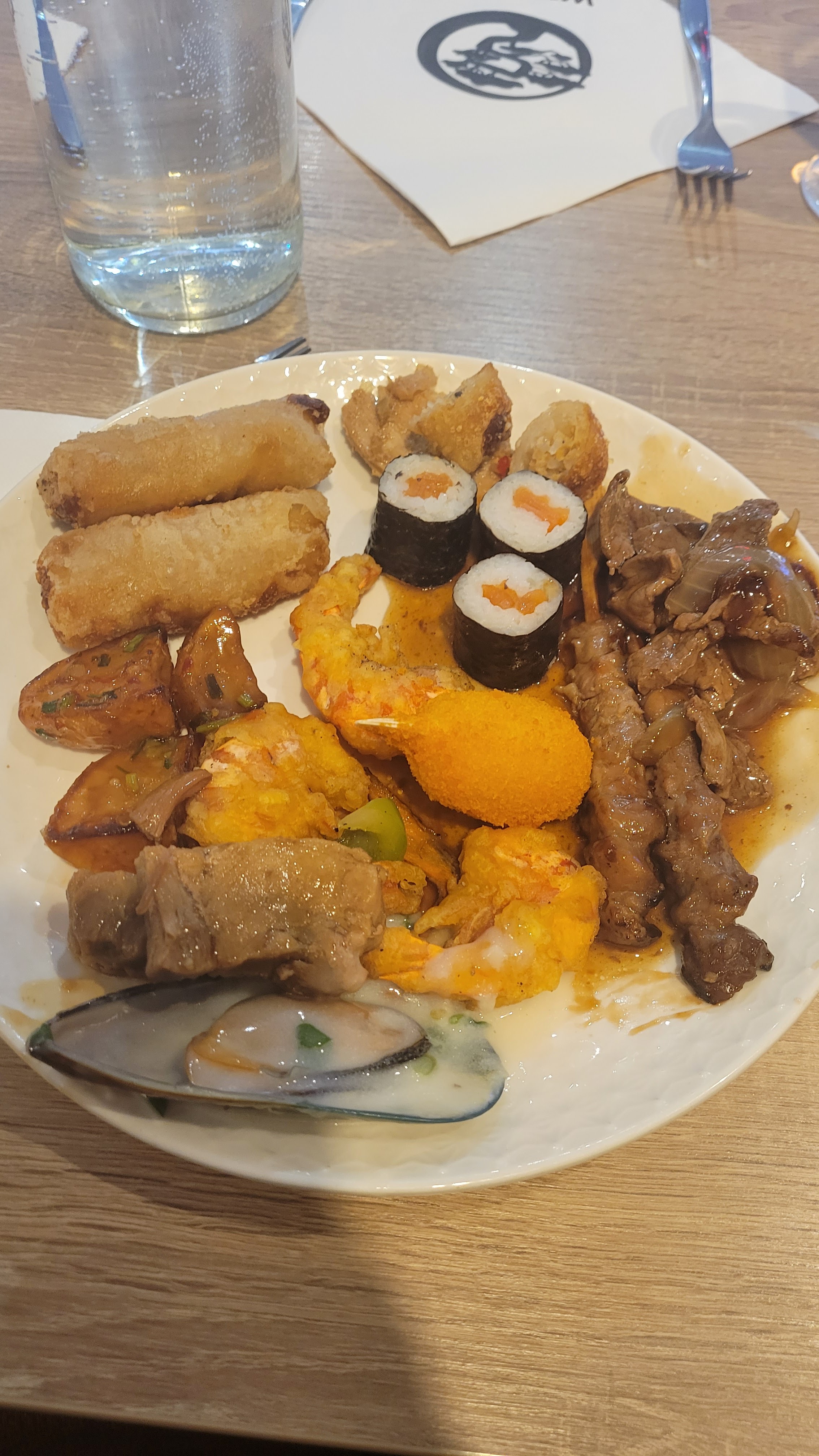 Bon accueil, salle spacieuse, il faisait un peu chaud, mais bonne ambiance Pour les plats il y avait pas un choix énorme mais reste correct les crevettes cuisinés sont top et les sushis aussi