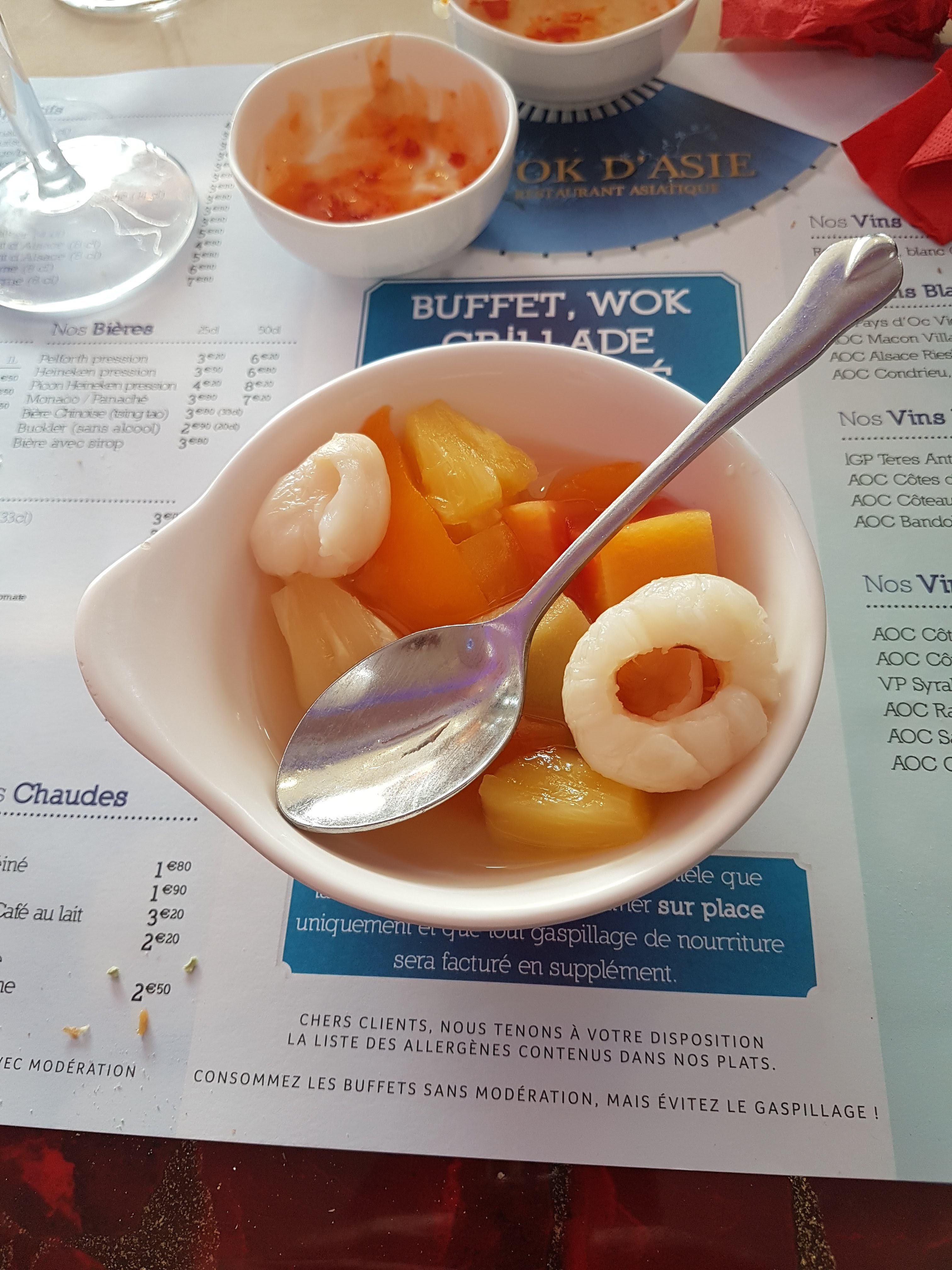 Posté le 24/01/2024 à 09:24"1ère fois hier soir au wok d Asie. Déception pour ce buffet à volonté... à 20h15 plus Grand chose dans le buffet. On se dit c est pas grave,ca va être vite approvisionner...ben non. Pour un samedi très limite déjà que les plats proposés ne sont pas extraordinaire en qualité et en choix si en plus les bacs sont vides. On sait que dans ce genre de restaurant ce ne sera pas de la grande gastronomie mais faut que le choix soit là 🙏 La salle en elle même est belle et grande donc plutôt agréable même si vous êtes pas au palais du sourire avec la serveuse 😅bref y a bcp mieux autour de Lyon."